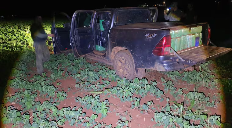 Los propietarios o encargados del transporte se internaron en una zona boscosa, abandonaron la camioneta y huyeron a pie. Dentro del vehículo encontraron aproximadamente 1.029 kilos con 85 gramos de supuesta marihuana prensada distribuida en 64 paquetes.