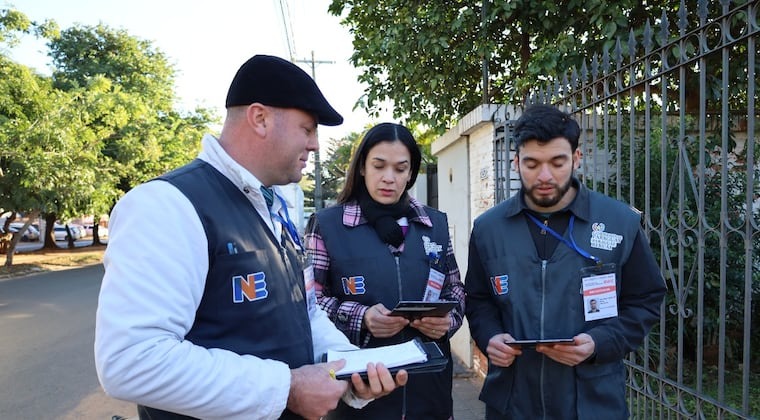 En total, se prevé recabar información de unas 3.060 familias de la capital y Central. Los funcionarios del INE se presentan debidamente identificados con chalecos gris oscuro, credenciales con código QR y una carta oficial.